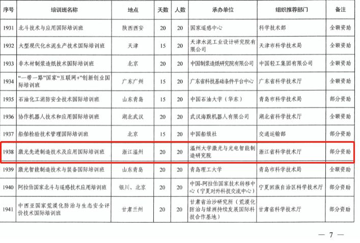 近日,科技部国际合作司公布《科技部国际合作司关于下达2019年度发展中国家技术培训班项目计划的通知》,本年度科技部共批准84个培训班项目,其中境内培训班78项,境外培训班6项。经浙江省科学技术厅推荐,beat365官方网站激光与光电智能制造研究院申报的“激光先进制造技术及应用国际培训班”顺利获批。