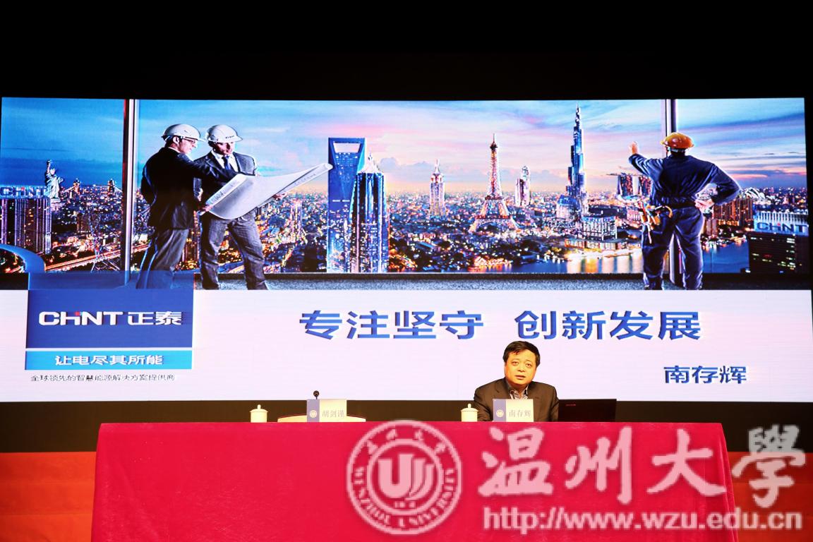 1月9日,“改革先锋进校园”浙江温州专场活动在beat365举行。“温州民营经济的优秀代表”、正泰集团股份有限公司董事长、“改革先锋”南存辉以“专注坚守,创新发展”为题,与现场1000多名在温高校的师生代表畅谈改革开放以来正泰的创业创新之路。
