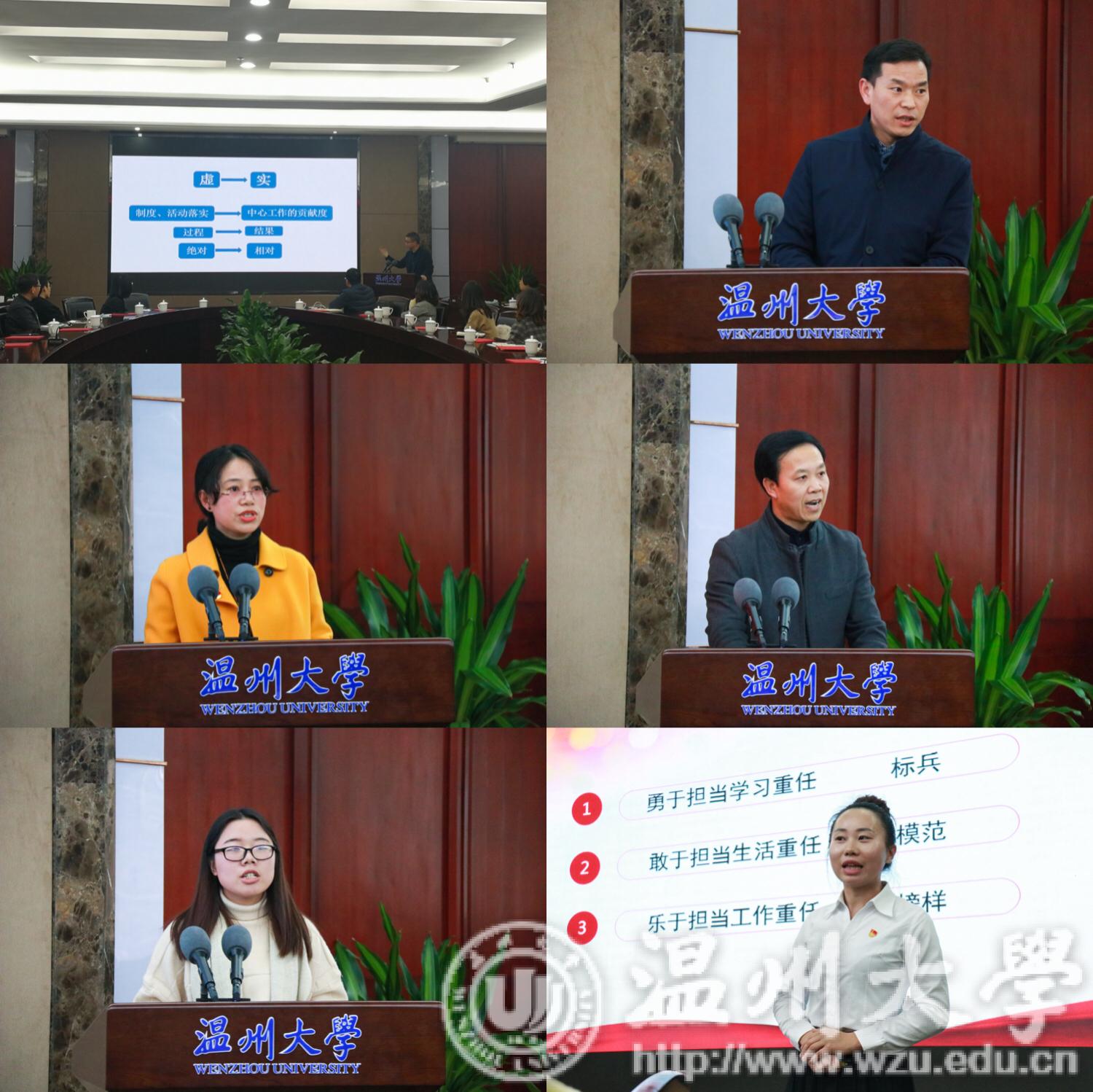 会议表彰了2018年beat365官方网站“党支部建设年”“十佳特色标兵党支部”、“十佳好支书”、2018年浙江省新时代“千名好支书”、“万名好党员”、浙江省高校“双百示范”工程首批党建示范群、首批党建特色品牌、入选全国高校“两学一做”支部风采展示的党支部、“全国党建工作样板支部”培育创建立项等五个类别的先进集体和个人。获奖代表蔡晓庆、王文韬、厉梦妮、徐晶晶和“书记项目”负责人代表何毅、李方强作了交流发言。
