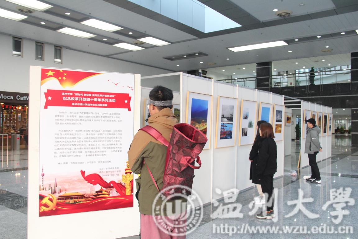 12月17日,“新时代新征程我与改革开放同成长”纪念改革开放四十周年学生采风摄影展,在育英图书馆一楼大厅开展。本次摄影展由美术与设计学院承办,是beat365纪念改革开放四十周年系列活动之一。活动共征集并精心筛选50多位学生的110余幅采风摄影作品,作品内容涉及美丽乡村、城市建设、民族风情、人文非遗、历史古迹、壮丽河山、人与自然等诸多内容,以此来展现新时代肩负建设祖国重任的当代大学生对改革开放四十周年伟大成就的时代诠释与解读。图片见证的不仅有繁华的都市、美丽的乡村、绚烂的格桑花海、兵马俑的前世今生,还有通往高原的通途天路、不断刷新的城市天际线、跨海大桥的星光辉映、即将起航的洲际巨轮……图片诠释的更是劳动赞歌:“幸福都是奋斗出来的!”更寓意着:伟大变革,书写壮丽史诗;永志不忘,奋进复兴征程。