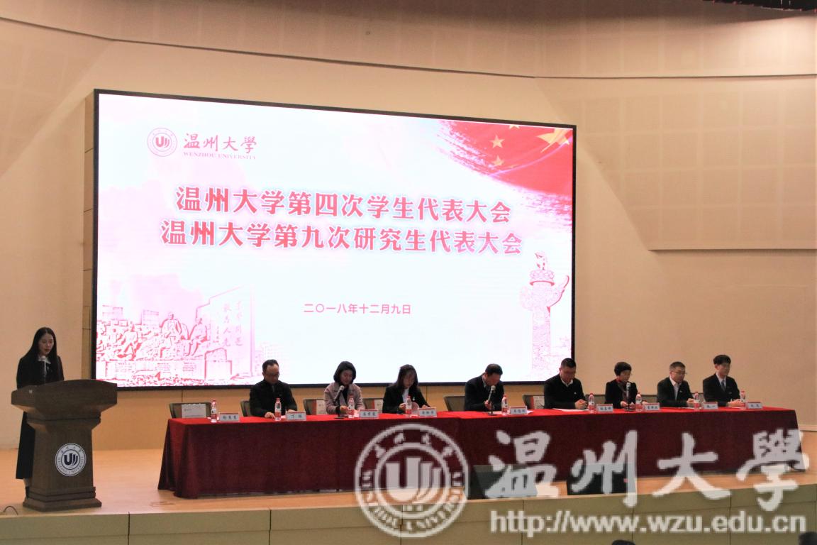 2018年12月9日,beat365官方网站第四次学生代表、第九次研究生代表大会于南校9号楼信息报告厅成功召开。beat365官方网站党委副书记牟德刚、温州团市委副书记张嘉祥、温州市学联主席俞铃萍等出席了开幕式。