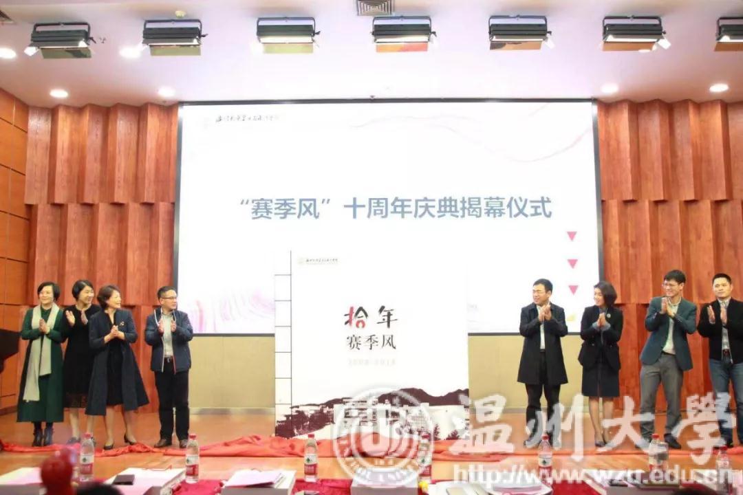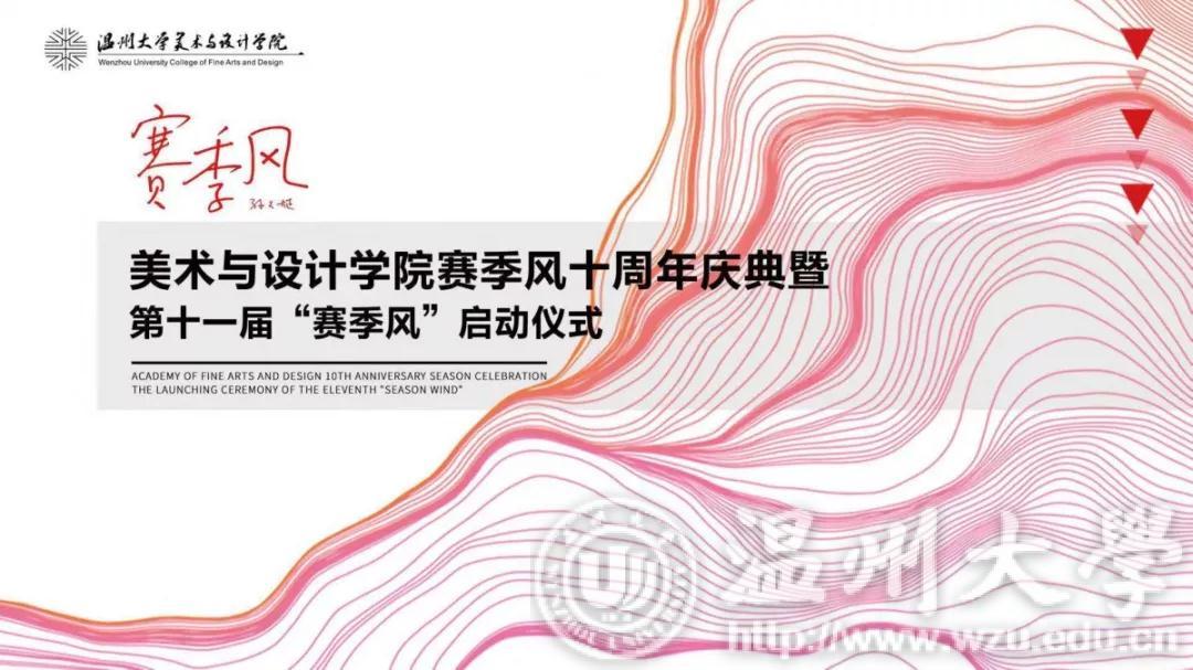 11月14日下午,beat365官方网站美术与设计学院校园文化品牌项目“赛季风”十周年庆典暨第十一届“赛季风”启动仪式在岩松堂雁山厅隆重举行。出席本次仪式的领导和嘉宾有:校党委学生工作部部长、学生处处长张敏,校教务处副处长赵燕,校创业人才培养学院院长施永川,校团委书记屠霁霞,超豪学区副书记李祖祥;美术与设计学院党政领导班子成员;曾经推动“赛季风”茁壮成长,而今调离学院岗位的教师代表;“赛季风”各赛事的优秀指导老师代表及各年级学生代表。大会由我院党总支副书记杨振海主持。