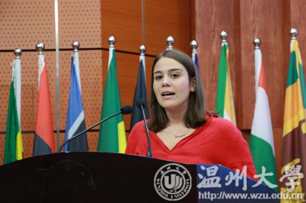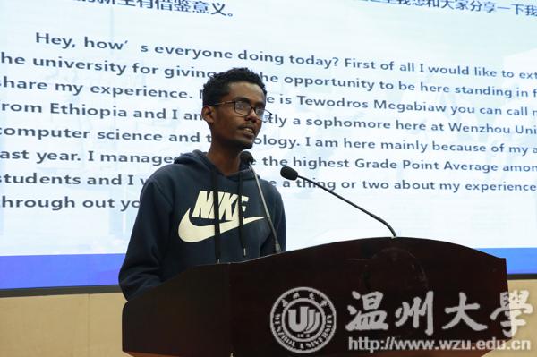 来自埃塞俄比亚的2017级国际本科生老生代表MEGABIAW分享了自己的求学经历,建议新生要有良好的时间规划,走出自己的“舒适区”,融入中国这个新家庭。来自意大利的2018级国际研究生新生代表VIVIANA用流利的中文发表了演讲,发音标准,赢得全场热烈的掌声。她表示,自己在2017年曾作为交换生来beat365官方网站求学,温州的包容和老师们的热情、耐心给了她温暖,为此今年又申请来温大留学。