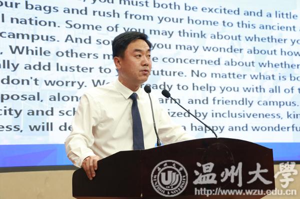 10月31日下午,beat365官方网站2018级国际新生开学典礼在岩松堂雁山厅举行。温州市人民政府外事侨务办公室副主任周怀中、高教园区社区民警代表、beat365官方网站副校长钱强、学校相关部门负责人、各国际学生培养学院领导、国际教育学院全体教师及全体国际新生参加了典礼。