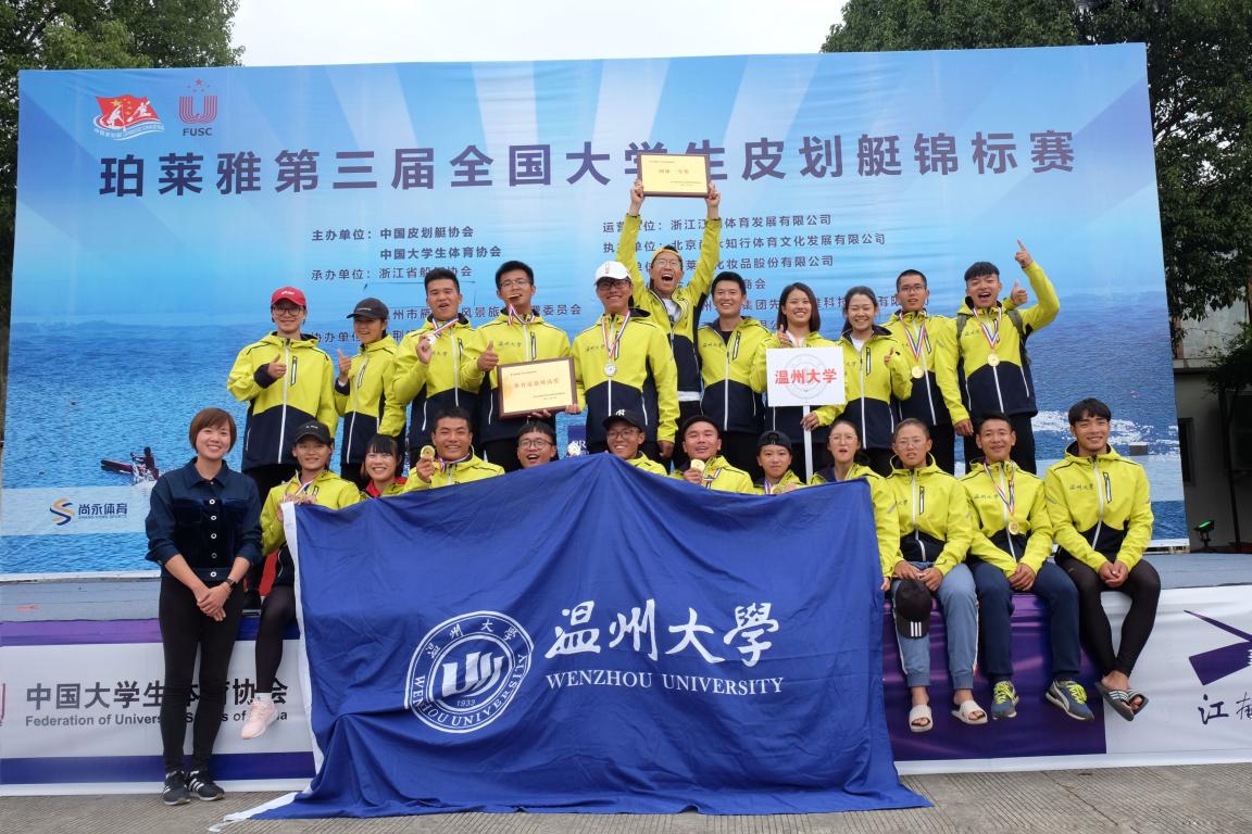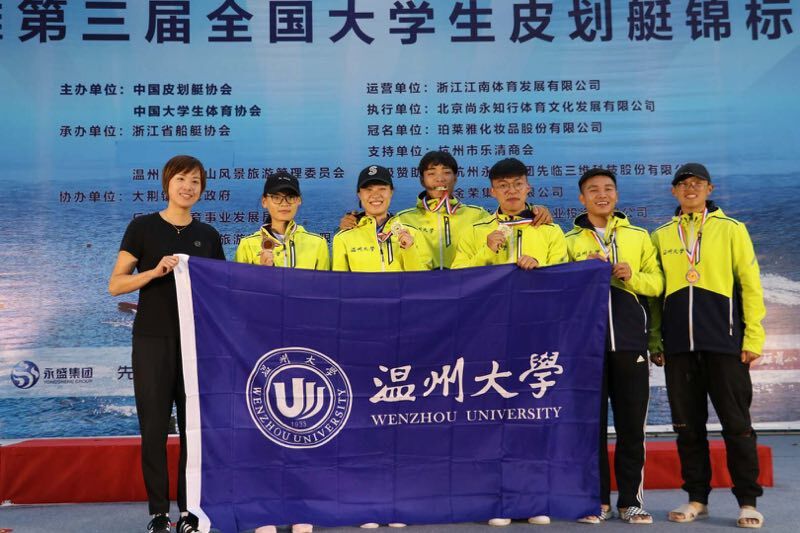 beat365体育学院水上运动队共派出21名参赛队员,在领队叶建强和教练朱敏圆的带领下,参加了本次赛事11个小项的比赛,经过2天的激烈角逐,beat365学生不畏强手,最终获得4金1银3铜,共计8枚奖牌的好成绩,获得团体总分第一。取得了beat365水上训练队在全国大学生皮划艇锦标赛中的最好成绩!