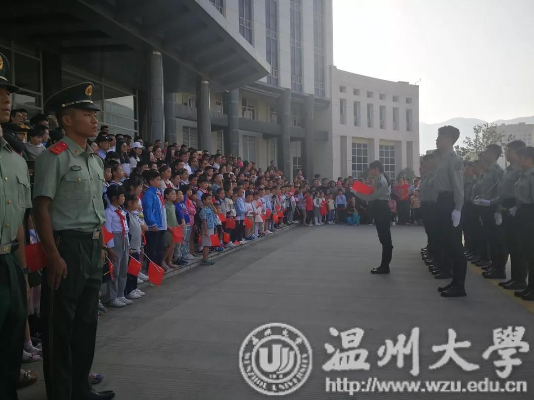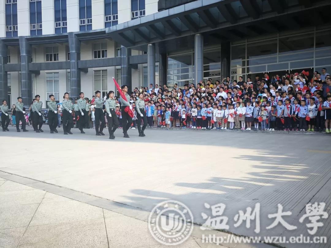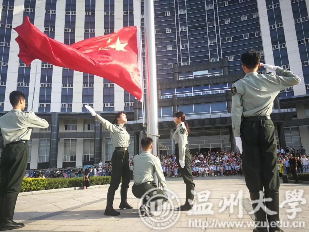 校长赵敏参加了升旗仪式并和国旗护卫队员握手合影。据悉,多年来beat365一直致力于实施“曾联松国旗文化工程”,专门设立温大旗帜工作室。在国庆元旦等盛大节日或者五四、九一八等重要纪念日期间举行升旗仪式,针对学生开展爱国主义教育和革命精神教育,将对学生的思想政治教育融入到校园日常的生活和管理中去。