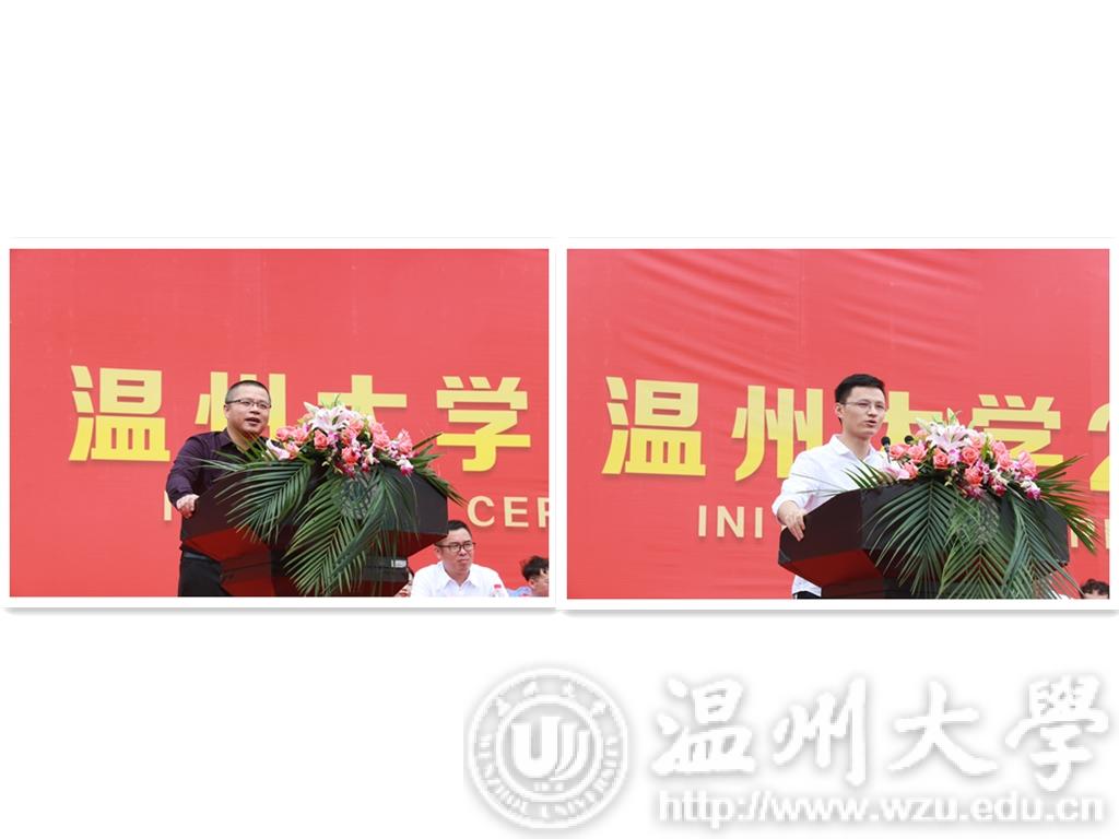 来自人文学院的教师代表杨祥银与新生们分享了他的求学经历和人生感悟,杨老师勉励同学们要成为一个“完整的,有意义的人”;校友代表、数理与信息工程学院毕业生张良玉结合自己研发“掌上大学”的经历,勉励新生“梦想虽不能当饭吃,但是持续向梦想发起猛攻的人一定会收获满汉全席。”