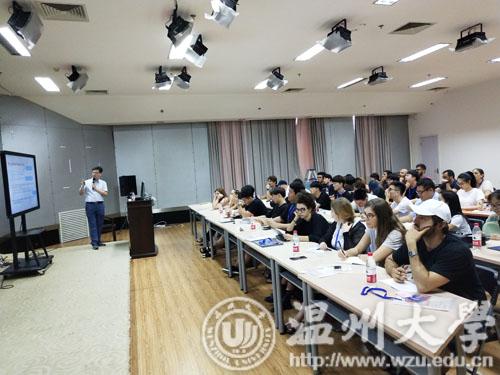 7月12日, 2018年beat365官方网站国际大学生暑期创业夏令营开营仪式在beat365举行,来自美国、意大利、韩国、孟加拉国、坦桑尼亚等国的60余人参加活动。外事处、创业学院的相关负责人、意大利锡涅纳大学玛利亚教授、韩国国立群山大学金显喆教授以及来自温州国家大学科技园、浙南科技城创业中心代表出席开营仪式。