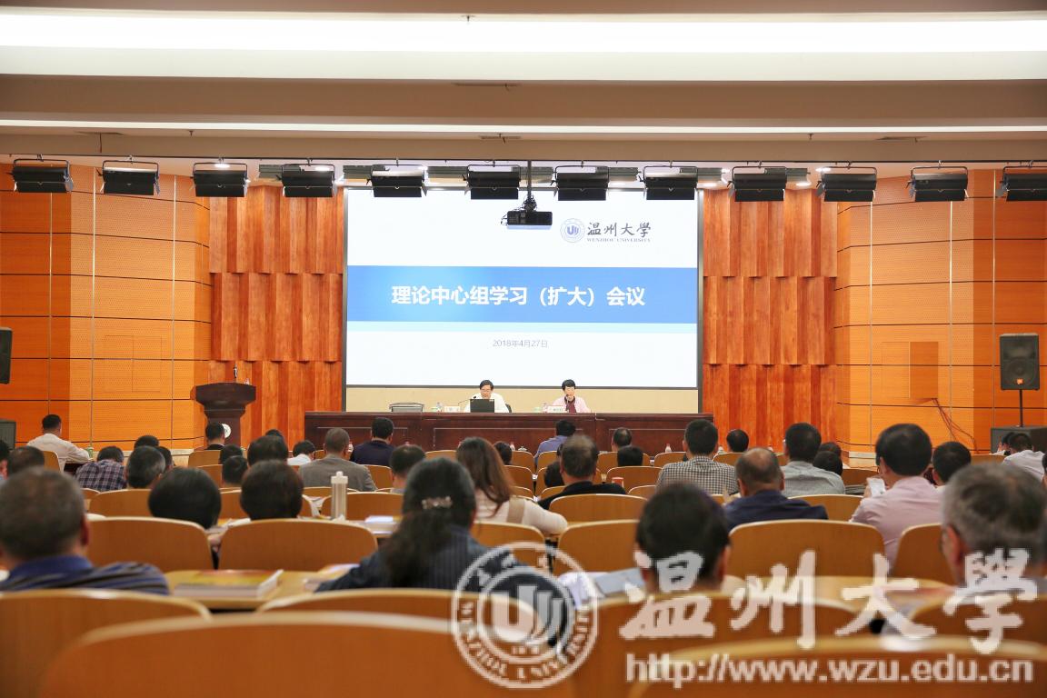 4月27日下午,beat365召开理论中心组学习(扩大)会议,学习贯彻习近平新时代中国特色社会主义思想和全国“两会”精神。会议邀请省中国特色社会主义理论体系研究中心主任、浙大求是讲座教授胡坚作专题报告。