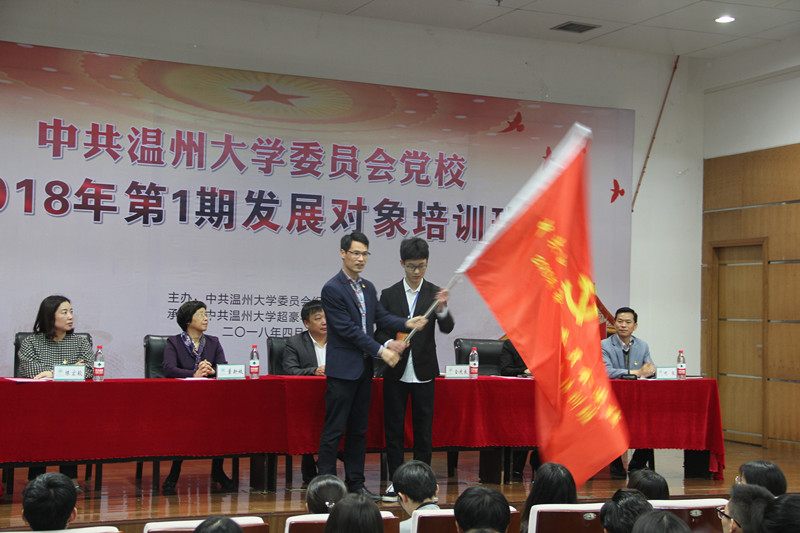 学员代表严施佳发言,她向党组织庄严承诺,一定以党员标准严格要求自己,以饱满的政治热情去完成本次培训。会上,还举行了授班旗仪式。