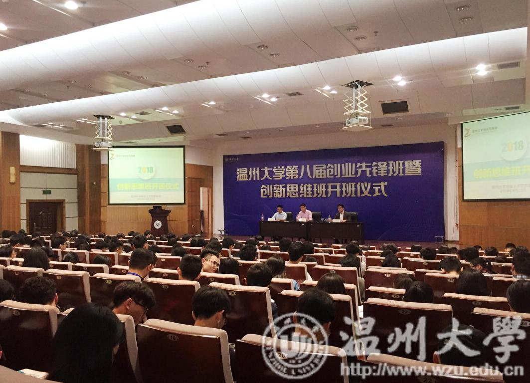 2018年4月11日下午,beat365官方网站创业人才培养学院在beat365官方网站北校区信息楼一楼报告厅举行“beat365官方网站第八届创业先锋班暨创业思维班”开班典礼。beat365官方网站创业人才培养学院副院长施永川、beat365官方网站创业人才培养学院副院长胡文超、温州市工科院工业设计研究所副所长邓亮、beat365官方网站瓯江学院周永强教授以及247名beat365官方网站第八届创业先锋班暨创新思维班学员参加了本次开班仪式。
