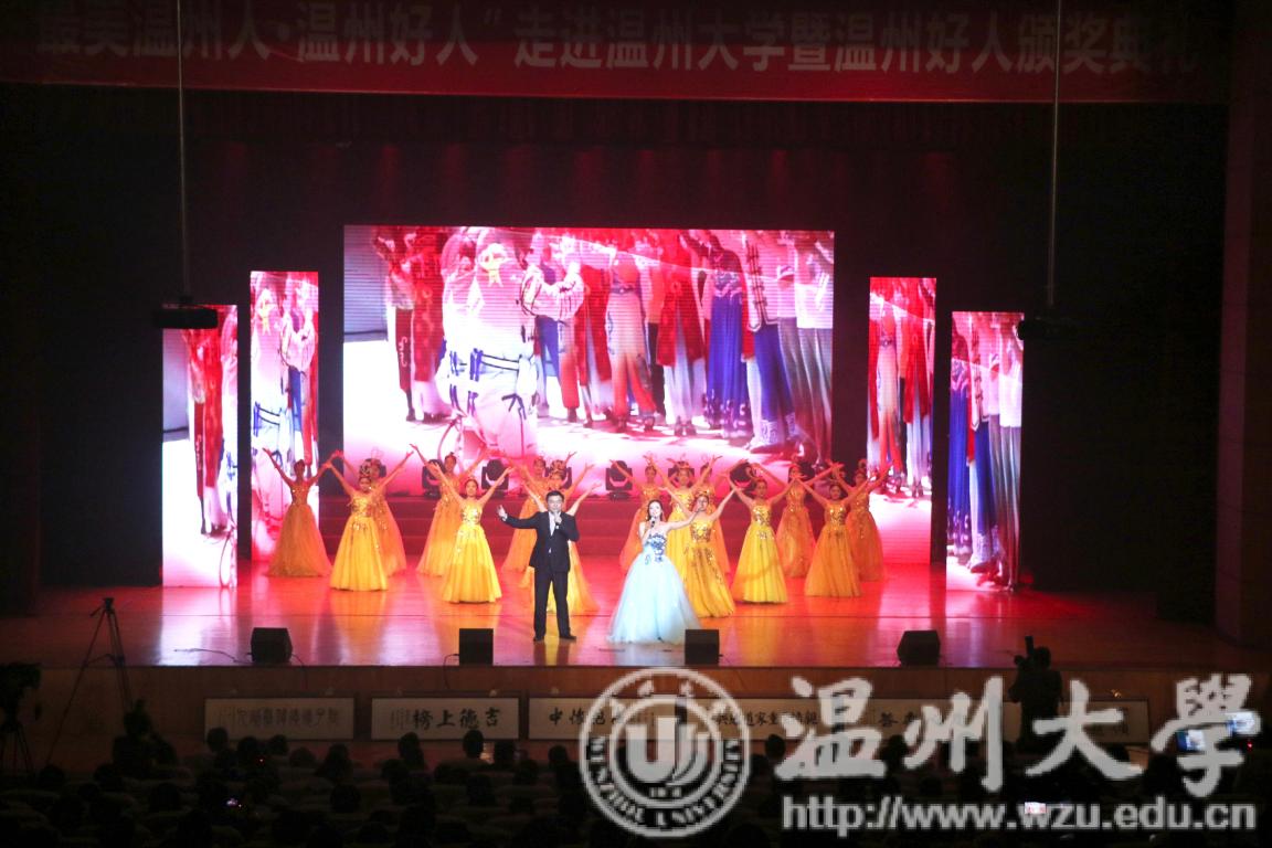 活动现场为70位“温州好人”进行颁奖。他们中有全国五一劳动奖章获得者吴品华,在西班牙恐怖袭击中协助香港同胞安全回国的许氏兄弟,心系乡村发展倾囊而出的光荣的人民教师柯吉榜等,他们的精神激励着每一个青年学子。育英大礼堂里掌声雷动,经久不息。