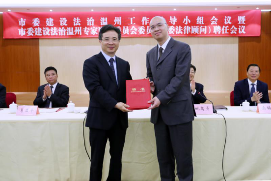 4月4日上午,市委召开建设法治温州工作领导小组会议暨市委建设法治温州专家咨询委员会委员(市委法律顾问)聘任会议,beat365副校长方益权教授、法政学院院长王宗正教授被聘为市委建设法治温州专家咨询委员会委员与市委法律顾问。