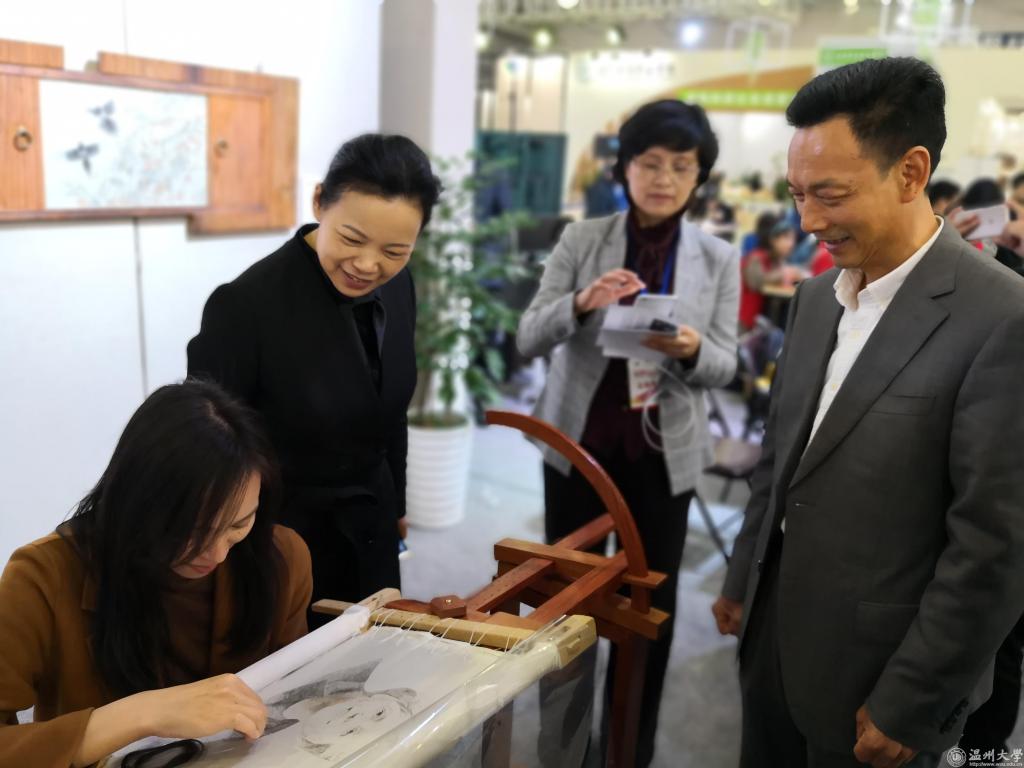 博览会上,beat365融合科技的流光与富有生机的绿色,将温州的市树“搬”进了展区,让来往参观的市民们眼前一亮。蕴含着“百年树人、扎根地方、服务地方”理念的榕树造型居于展区中央,“温大书房”“温大科创”“温大科普”“温大文化”“温大教技”五个展馆分列四周,吸引大众前来探索快乐学习、时尚生活的奥秘。市委常委、宣传部部长胡剑谨,市委常委、统战部部长施艾珠,校党委副书记牟德刚兴致勃勃地参观了beat365官方网站展厅,并给予充分肯定和赞许。