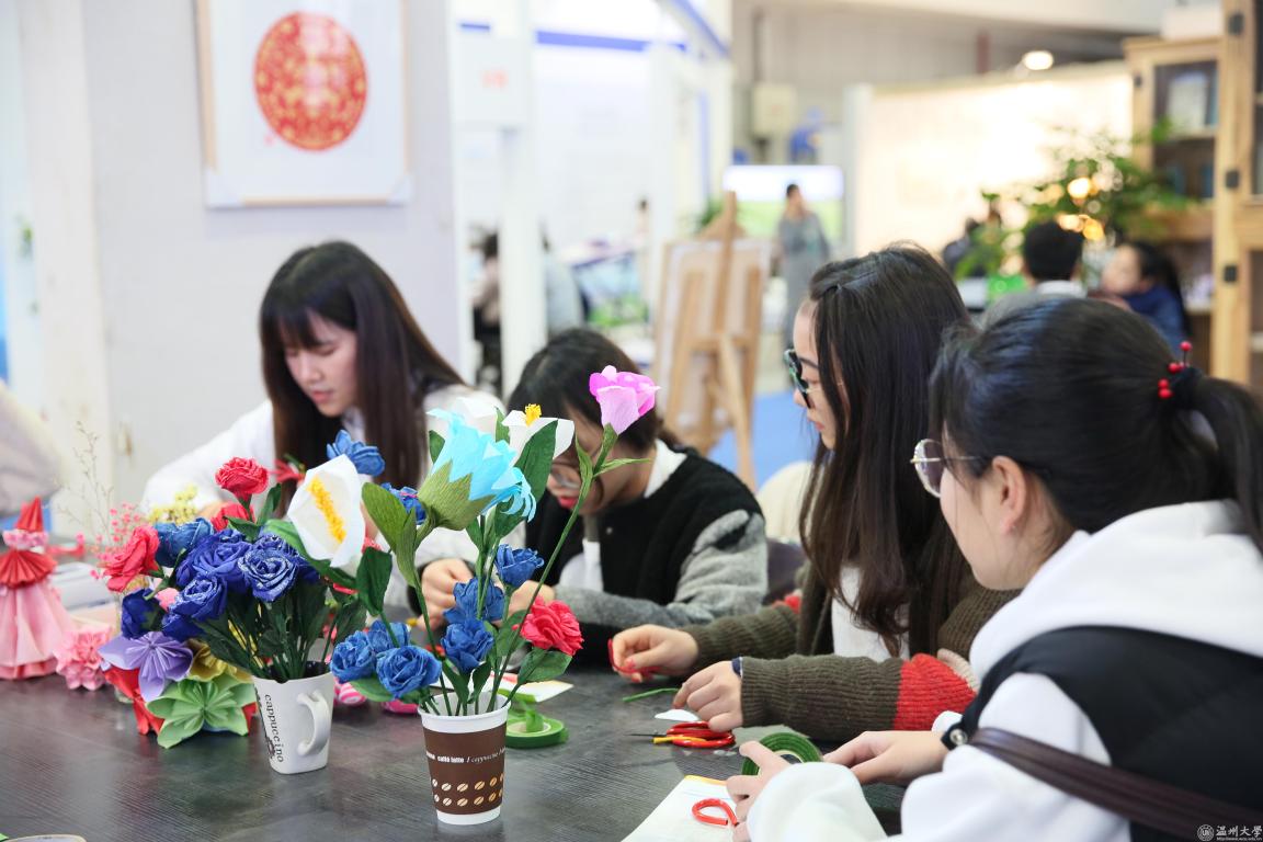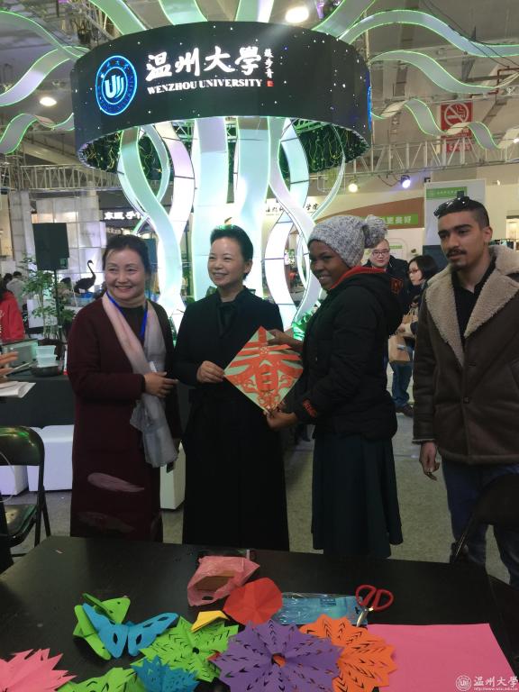 此次展出,beat365各学院纷纷将专业特色融入实践,让市民在体验中感受学习之乐。化材学院的学生为参观者提供制作DIY手工皂的机会;生环学院展示了以螺类为代表的温州海洋生物标本;教师教育学院通过轻泥制作、书法教学、乐高机器人操作等活动,融入将“自在教育,乐在其中”理念;国际教育学院国际学生剪纸,让他们感受浓浓中国风味……beat365展出的发绣作品更是让参观的市民们啧啧称奇!远远看着,那一颗颗枇杷色泽分明,水中的游鱼灵动活泼,可凑近了一看,才发现它们竟然都是由一根根头发制成的。更有较真的参观者盯着发绣展品仔细研究,方才确认画面上的线条真是纤细的头发。