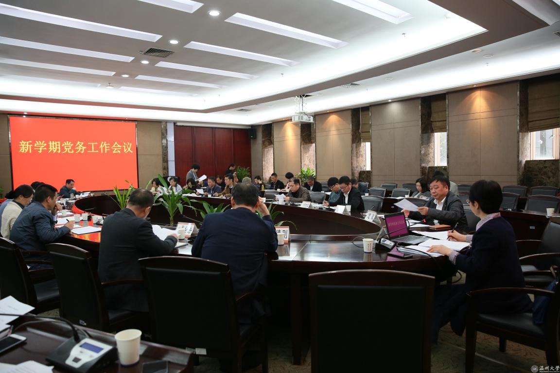 会上,学工部、研工部、保卫处、国际教育学院、宣传部等单位负责人就校园安全稳定隐患排查和意识形态领域分析研判情况作发言;纪委、组织部、宣传部、党校办、学工部、研工部等党务部门负责人汇报了新学期党建工作要点。