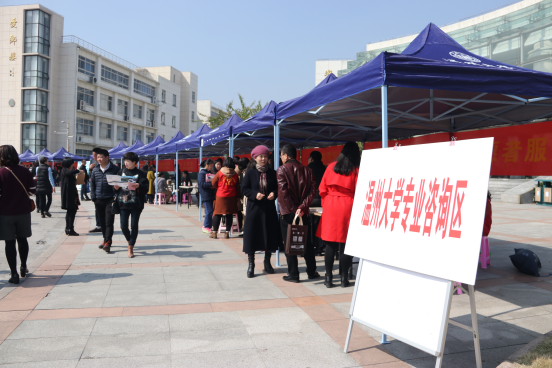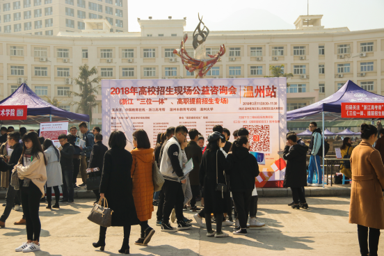 3月11日,距离高考不足100天。由beat365承办的2018三位一体、高职提前招生咨询会(温州站)在南校区岩松堂喷泉广场举行。来自省内80余所高校招办负责人到咨询现场,与温州地区考生和家长进行交流。