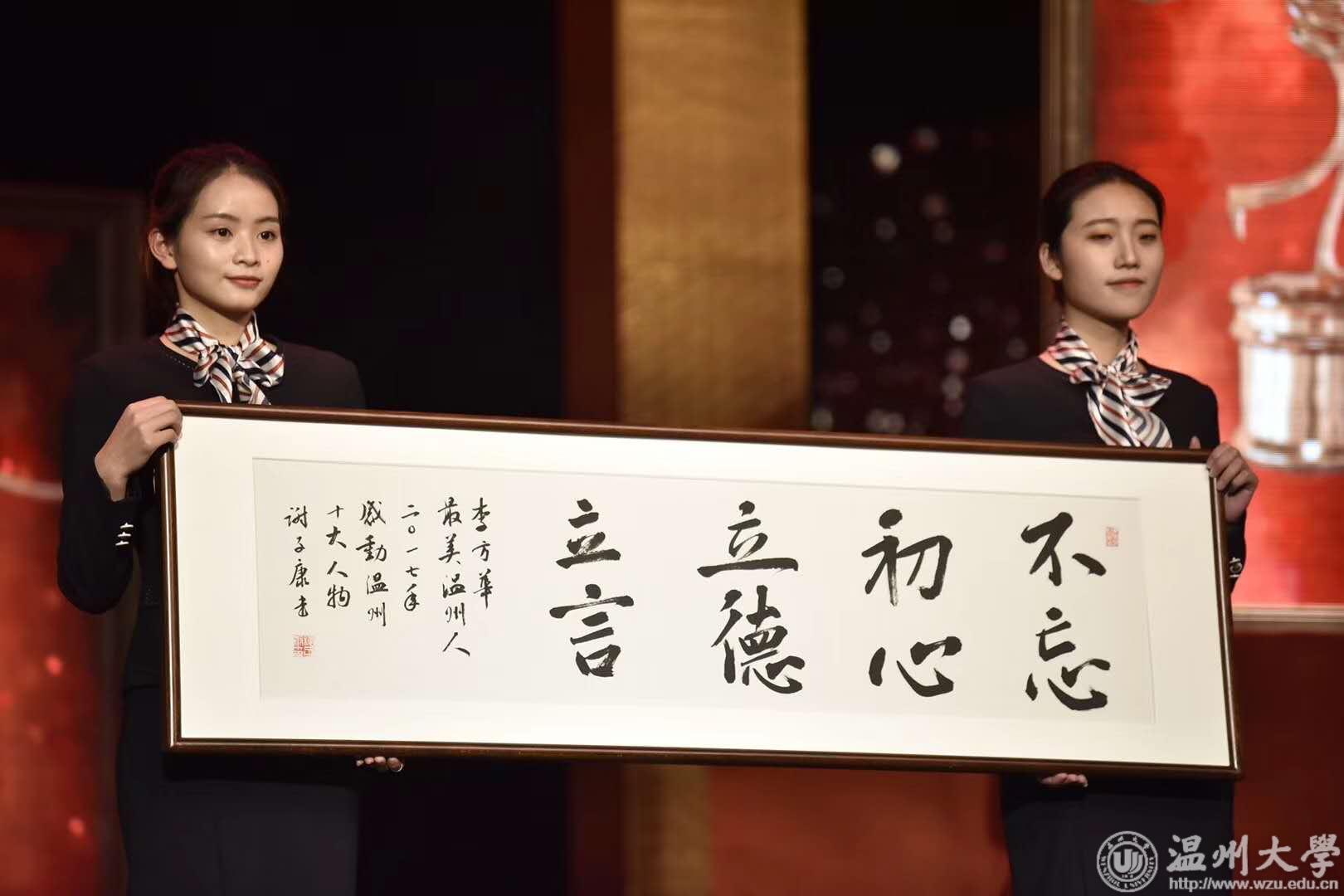3月5日晚,“最美温州人——2017感动温州十大人物”颁奖典礼在温州市广电中心举行,beat365离休干部李方华被评为“最美温州人——2017感动温州十大人物”。典礼上,市委常委、宣传部长胡剑谨为李方华颁奖。