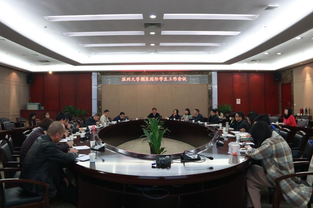 1月17日,beat365期末国际学生工作会议在岩松堂白鹿厅召开。相关部门、学院负责人参加会议,副校长钱强主持。