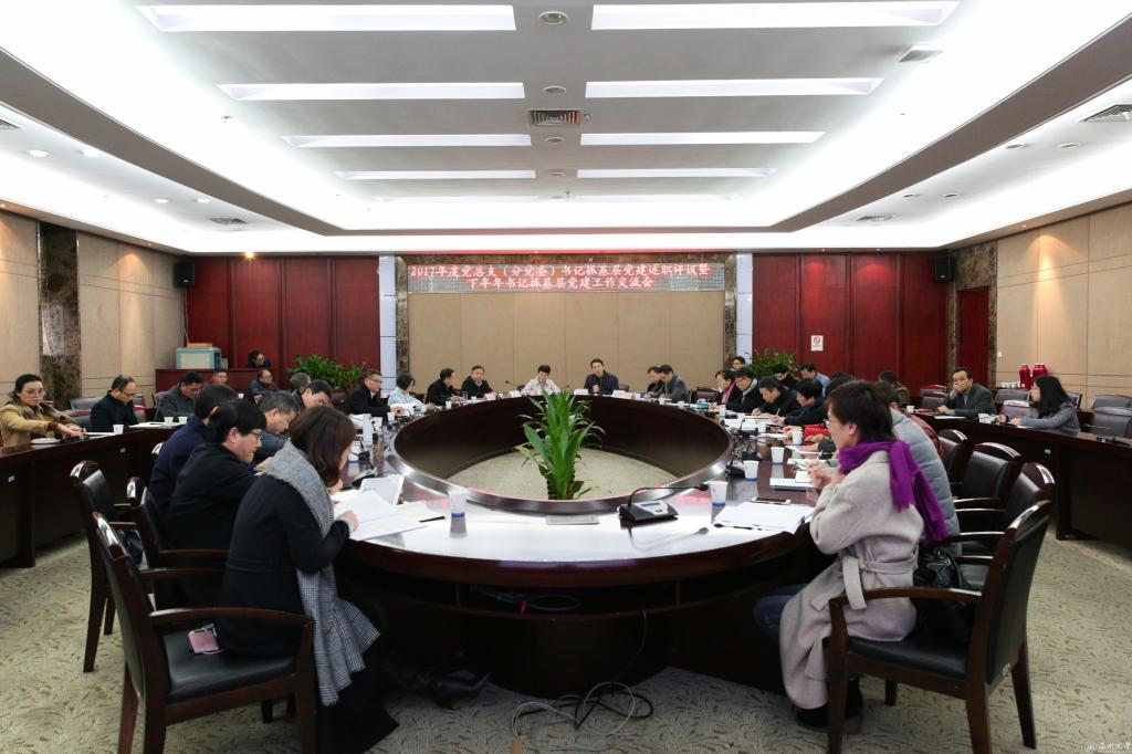 1月5日上午,beat3652017年二级党组织书记抓基层党建述职评议暨下半年书记抓基层党建工作交流会在南校岩松堂白鹿厅举行。校领导林娟娟、赵敏、吴金法、潘玉驹、郑信军出席会议,党群部门负责人、全校二级党组织书记参加会议,校党委副书记牟德刚主持。