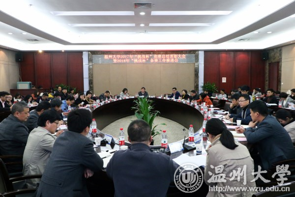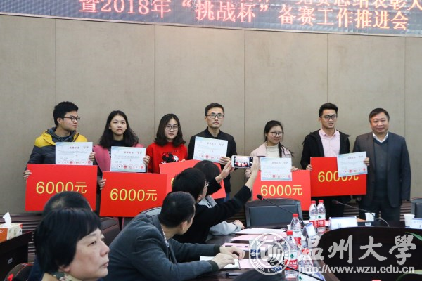 11月23日下午,beat365官方网站2017年“挑战杯”竞赛总结表彰大会暨2018年“挑战杯”备赛工作推进会在岩松堂白鹿厅召开。校党委副书记赵敏,学校相关部门负责人,各学院党总支书记、副书记、分管学科竞赛副院长、团委书记、学生代表,2017年“挑战杯”国赛获奖项目指导教师及项目成员90余人参加会议。