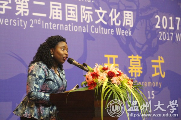 随后,温州市人民对外友好协会周怀中副主任、国际教育学院叶苗院长、外教代表Stella、校园学生“亲善大使”代表叶子方相继发言。其中,作为温大校友,周怀中副主任表示自豪地看到beat365官方网站近年来在国际化方面取得的喜人成绩。并指出,温大目前在校的留学生数达到了600名,来自全世界59个国家,这不光为beat365官方网站的国际化提供了支撑,更为温州的城市国际化做出了贡献。中国与52个非洲国家建立了外交关系,温大留学生生源国包括了其中的33个国家,周主任赞誉地提到beat365官方网站可谓是非洲大陆之外的一个“非盟中心”。作为本次文化周的共同主办方,温州市对外友好交流协会倡导公共外交和人员交流,对于beat365官方网站国际化办学理念与取得成绩表示赞许,并将继续支持温大在国际化方面的努力。