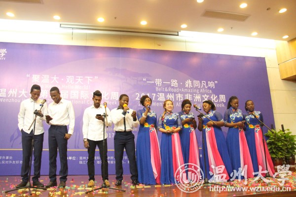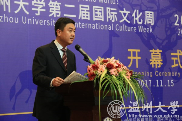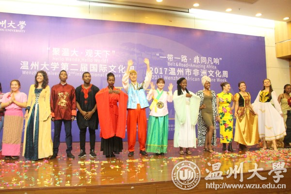 11月15日下午,“聚温大·观天下”beat365官方网站第二届国际文化周暨“一带一路·非同凡响”2017温州市非洲文化周开幕式在图书馆学术报告厅举行,韩国驻上海总领事馆教育领事文泰烈、温州市人民对外友好协会副主任周怀中、温州市人民政府外事侨务办公室对外交流处处长叶斌斌出席,beat365副校长钱强、相关部门学院负责人及师生代表参加,外事处副处长熊勇主持。不一样的语言,不一样的肤色,不一样的文化……来自世界各地的beat365学子相聚一团,碰撞出激情跃动的火花,点燃温大传递给世界的文化火炬。