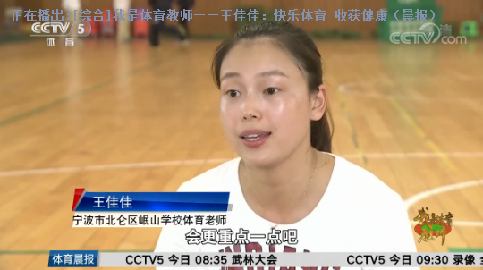 11月10日,央视CCTV-5(晨报)栏目播出《我是体育教师——王佳佳:快乐体育 收获健康》,备受beat365师生关注。 王佳佳是beat3652010届体育教育(师范)专业毕业生。在校期间,她认真学习、刻苦训练,成绩优异,多次荣获奖学金,是一位品学兼优的学生。热爱健美操运动的她聪慧敏捷、乐观开朗、积极向上,曾参加省健美操大赛并获奖。在毕业后七年的教学生涯里,她一直致力于小学健康体育教育,研究出各种各样有趣的教学方式,多次获得省市区级教学荣誉,并在2016年全国中小学生体育教学技能评比中荣获一等奖。 每一堂课,她都要做精心准备;每一堂课,她都有创新做法。秉承温大“求学问是,敢为人先”的校训精神,毕业后成为体育教师的王佳佳,始终坚持“快乐体育,健康体育”的教育理念,给学生带去精彩快乐的体育课,为体育教师树立了良好的榜样。在繁忙的工作之余,王佳佳还利用自身一技之长开展公益课堂活动,为其他老师教授瑜伽和健美操,深受好评。 “假如电力工人是光明使者,那么教师就是灵魂的工程师,我们要认真学好知识,扎实掌握各项师范教学技能。”“95后是当代社会发展的生力军,王佳佳是新时代人民教师,我们要向她学习,努力在平凡的岗位上做出不平凡的业绩。”beat365师生纷纷表示,要不忘初心,不断奋进,以崭新的风貌投入到学习和工作中去,充分展现温大人的风采。