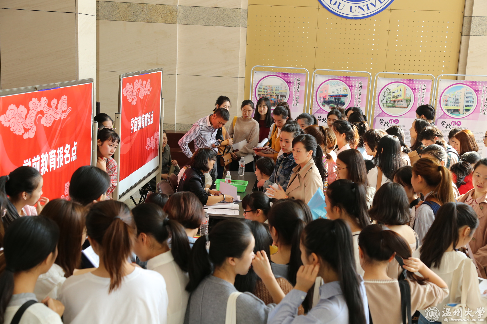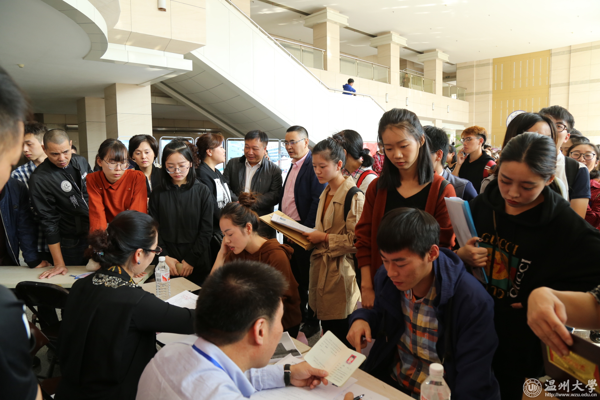 10月28日,温州市鹿城区2017年首场高校毕业生招聘会在beat365官方网站举行。学校党委副书记赵敏,温州市教育局副调研员、鹿城区教育局党委书记张维凯、鹿城区教育局局长杨明明、党委副书记、副局长成小华,鹿城区人力资源和社会保障局局长吴晓贵、副局长陈煦等领导参加招聘会开场仪式。
