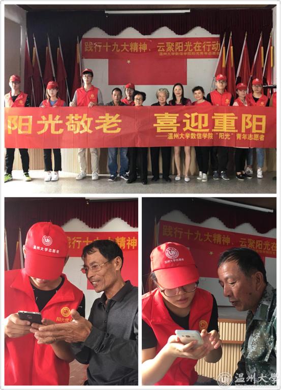金秋十月,重阳节即将到来,为加强优良传统文化教育,践行党的十九大精神,着力推动社会主义核心价值观建设,积极响应学校深入实施“五爱”主题教育活动和“新青年下乡”活动。beat365数信学院“阳光”青年志愿者以及数信学院党支部的志愿者们前往温州市鹿城区七都街道樟里村和板桥村开展“阳光敬老、喜迎重阳”优抚特别活动。 活动面向鹿城区七都社区樟里村和板桥村的优抚退伍老兵以及社区老人开展中医养生知识讲解、教授老人使用智能手机等敬老服务活动。为了使老人们的日常生活更加方便,志愿者们耐心地教授老人使用智能手机,为老人们解决了在使用手机方面的一些困惑,此外也教会了一些老人们关于使用微信、进行通讯的简单方法,整个活动过程非常热闹温馨。此外,鹿城区民政局和beat365数信学院阳光青年志愿者还为优抚老兵送上真挚的祝福,老兵们纷纷表达了自己对党和国家社会的感激之情。 使命呼唤担当,责任引领未来。此次活动紧密贴合国家优抚政策,从优抚老人的身心健康需求出发,聆听优抚老人心声。志愿者们纷纷表示,身为新时代的青年大学生,每一个人都应该勇于担当,敬老爱老,并将这份传统、这份爱心不断地传承下去。