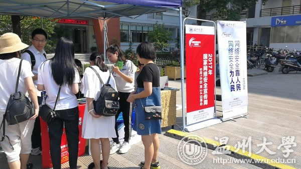学校网络安全教育工作从大一新生做起。新生报到这一天,现代教育技术中心等部门在迎新现场开展网络安全宣传活动,向新生发放网络安全手册,介绍个人信息保护、钓鱼网站、恶意二维码、电信诈骗、口令安全、勒索软件等网络安全知识和防范建议。