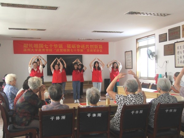 献礼新中国成立70周年系列活动的背后不仅是致敬光荣历史的爱国情怀,更是青年学子将小我融入大我的时代担当。这次庆祝新中国成立系列活动,不仅仅是一次满载温大教院人对祖国的祝福的生动爱国主义教育,更是丰富的红色元素下有趣有料的生动的思政课。beat365官方网站教育学院将继续加强爱国主义教育,深化“博爱雅艺”师范气质培育,让学生们在爱国主义氛围熏陶中把红色基因内化于心、外化于行,将学子之情汇聚共筑中国梦。(通讯员 刘信义)