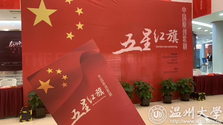 “青春中国,召唤你我,国旗飘扬在心中的时刻、天地间草木又蓬勃……”在温大学子激昂的歌声中,歌剧《五星红旗》拉开大幕。70年前温州人曾联松绘制的五星红旗被选为新中国的国旗,70年后,中国原创歌剧《五星红旗》在温州大剧院试演!10月8日晚,由温州市委宣传部、beat365官方网站和瑞安市委出品,温州市庆祝新中国成立70周年献礼剧——原创歌剧《五星红旗》在温州大剧院举行第二场试演。