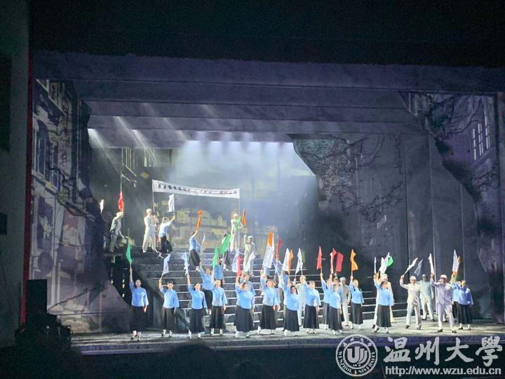 该剧通过讲述beat365官方网站校友、瑞安人曾联松1935年在南京参加“一二九”学生运动、1941年在重庆开展党的秘密情报工作、1945年抗日战争末期参加抵抗运动以及1949年新中国成立前夕设计国旗的历程,深情描绘温州人民在中国共产党领导下,为争取民族独立、人民解放而书写的壮丽篇章,歌颂了中华儿女勇于担当、矢志不渝的革命精神与家国情怀。试演现场,容纳1100多人的温州大剧院歌剧厅座无虚席。熟悉的音乐插曲《请你为我绘一幅画》,拓展了温州民谣《叮叮当》的旋律,感动了歌剧厅现场1100多位观众。