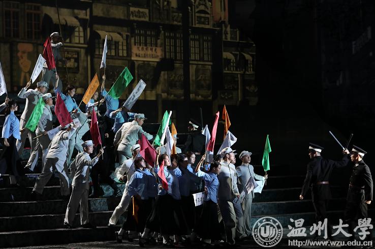 朝霞染色,旭日蓬勃,国旗升起在校园的时刻。先辈来过,英雄走过,涤荡着,希望传薪火……2019年秋天,beat365官方网站操场,开学升国旗仪式后,学生合唱《我的青春中国》。国旗升起的时刻,激情涌动,内心澎湃!今晚,一幕《国旗颂》拉开温州原创四幕歌剧《五星红旗》第二场试演的序幕。温州人的家国情怀,涤荡,不息。
