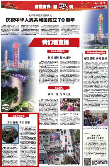曾服役于中国人民解放军驻港部队的beat365官方网站学生应丰泽,昨天身着自己服役时的军装参加了学校的活动。他告诉记者,当听到熟悉的国歌声响起,整齐的队列前进,自己内心热血澎湃。受阅一次,荣耀一生。他对自己曾是一名军人,感到无比骄傲。