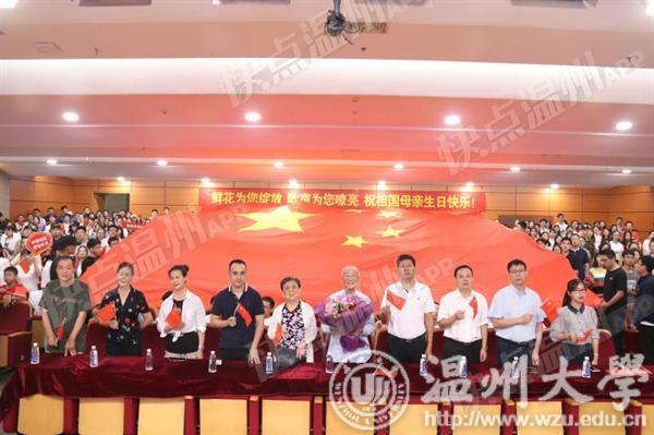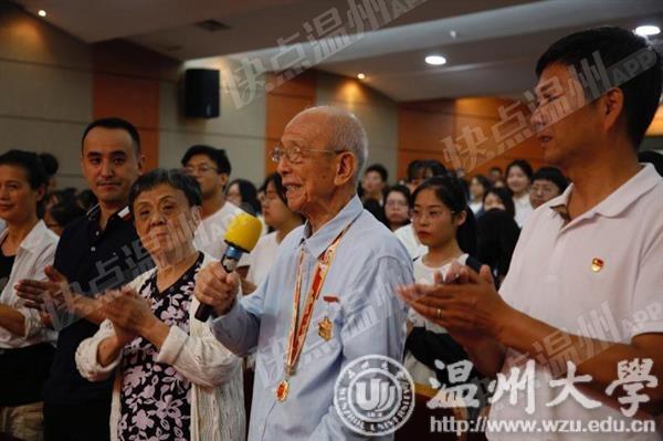 师生共聚,见证祖国繁荣富强。学校离休老教师代表杨作浩老师也参加了活动。杨作浩老师今年已经九十六岁高龄,但他仍旧坚持在这一天,在温大,为祖国祝福。他为大家演唱了一首《毕业歌》,“同学们!同学们!快拿出力量,担负起天下的兴亡!” 沧桑而有力量的歌声传来,在场师生无不动容。这不仅仅是一首歌,更是一个经历过中国几十年风云变幻的老人对一代年轻人叮嘱和鼓舞。