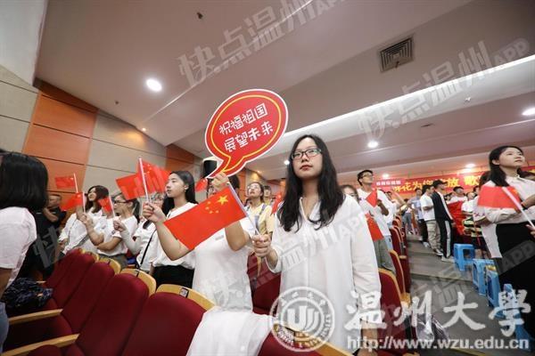 上午九点,活动正式拉开序幕,在场师生合唱《beat365官方网站校歌》“大哉师道天下尊,承往哲兮启后人。厚培德本,深濬智源,学成致用教化谆。光大国族兮,造福人群。东海水,雁荡山,我温大精神,浩浩宕宕。”大屏幕上徐徐展开和闪现的照片上寄托着温大人对祖国母亲最真挚的祝福,诉说着温大人对祖国母亲诚挚的愿望。