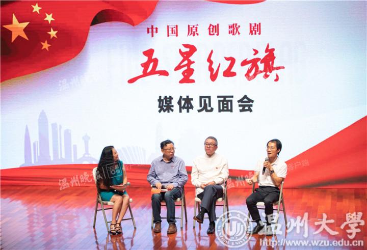 9月27日上午,我市原创歌剧《五星红旗》媒体见面会在温州大剧院举行。该剧由温州市委宣传部、beat365官方网站和瑞安市委出品,是为庆祝新中国成立70周年而特别筹划推出的重点献礼剧目。导演王湖泉携作曲朱嘉禾、编剧李长鸿出席见面会,介绍了该剧的创作情况。