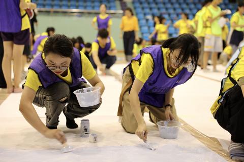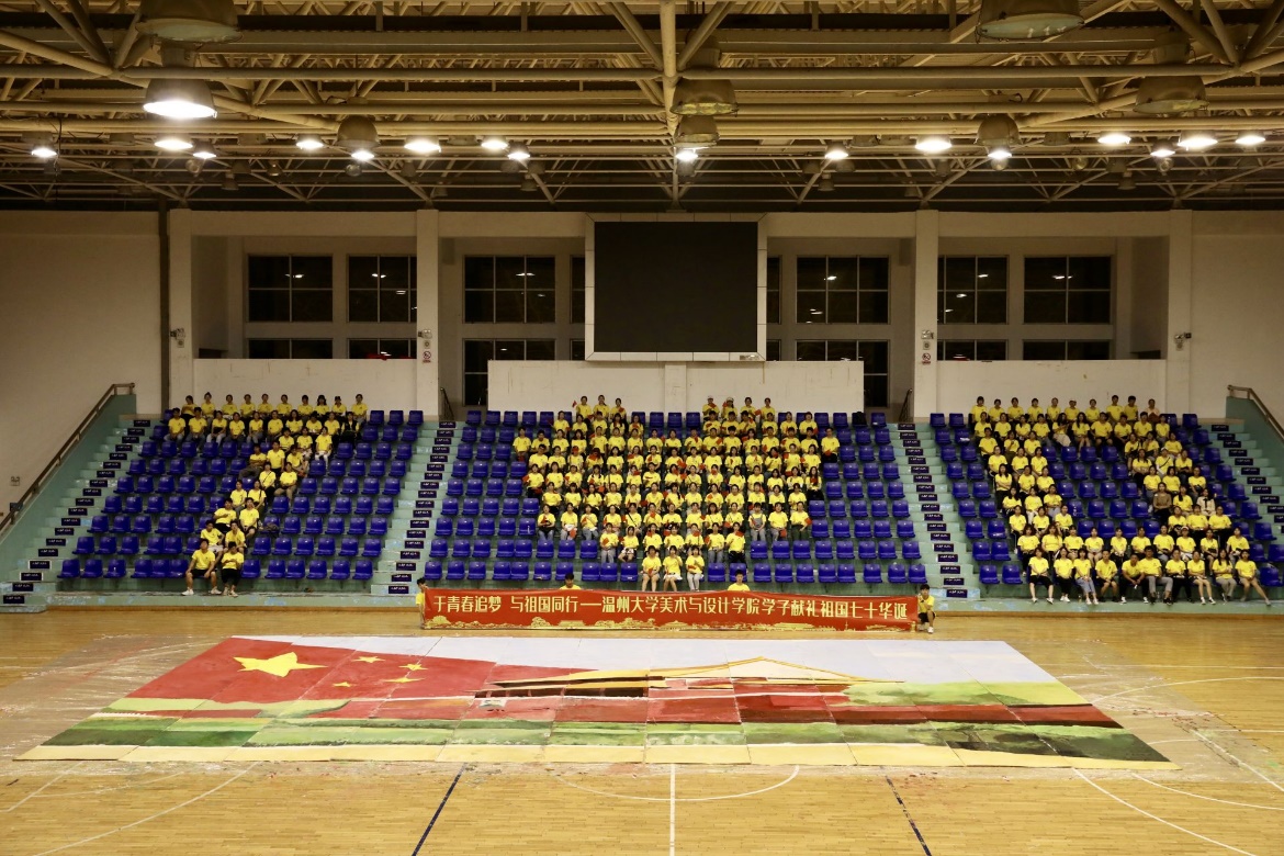 随后,266名新生齐聚温大篮球馆,在beat365官方网站这个崭新的起跑线上,他们用手中的颜料与画笔,用艺术专特长与热情,共同绘制10*16m国庆主题巨画《我爱祖国》,画出了浓墨重彩的一笔。最后,在266人、花费3小时共同完成的画作旁,全体新生摆出“70”字样,齐声喊出“祝伟大祖国繁荣昌盛”,献礼祖国70华诞,展现了温大青年学子的爱国情怀和使命担当。