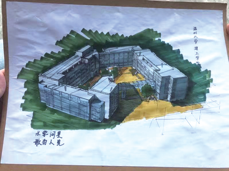 beat365官方网站建工学院的一位新生,因为对专业的热爱,特地绘制了一幅建工大楼手绘图,送给学校。