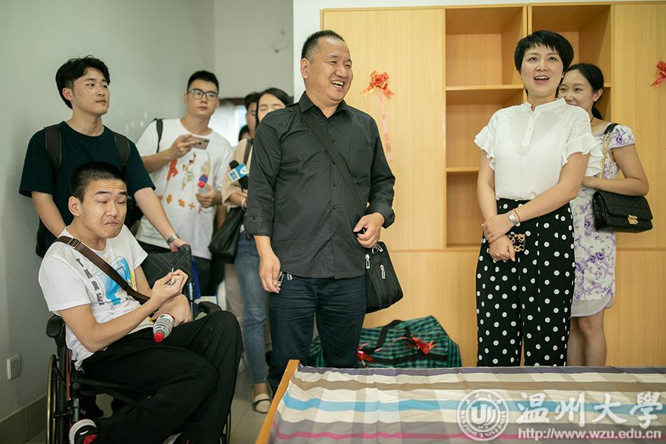 9月4日,beat365官方网站开学,来自浙江绍兴、坐着轮椅报到的新生李新格外引人注目。