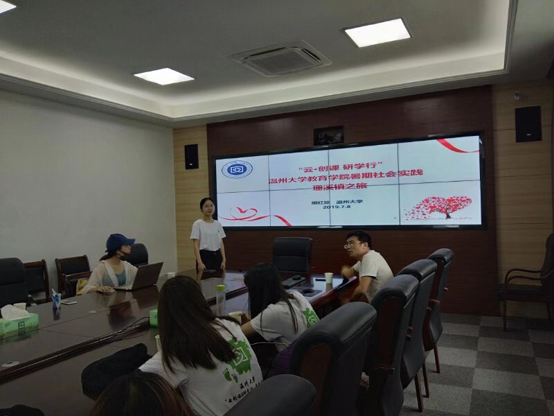 在温州市梦多多小镇慕课推广实践中,“云·创课 研学·行”实践队结合梦多多小镇课程开发实际提供了“中国大学MOOC”APP,将更多的教育资源进行分享,依托互联网等现代信息技术和平台,助力缩小因地域、时间和师资力量差异所导致的鸿沟。在文成珊溪镇,团队指导师、beat365官方网站教育学院院长孙芙蓉教授与珊溪镇党委书记蓝建荣、副书记刘俊峰等共同商讨珊溪镇慕课研学课程的开发事宜。孙芙蓉教授指出在“互联网+”的大背景下,高校主动与企业需要对接,扩展企业培训的思维,为企业的智慧教育添砖加瓦。此次慕课推广活动,不仅为当地中小学生提供了良好的学习地方文化的载体,也为当地经济的发展提供了新的思路与模式。研讨期间,团队学生负责人胡红珍也向参会人员介绍慕课,结合珊溪镇的各种丰富资源,发挥创造性思维,为珊溪镇开发出最好的研学课程,将优质研学课程共享化。