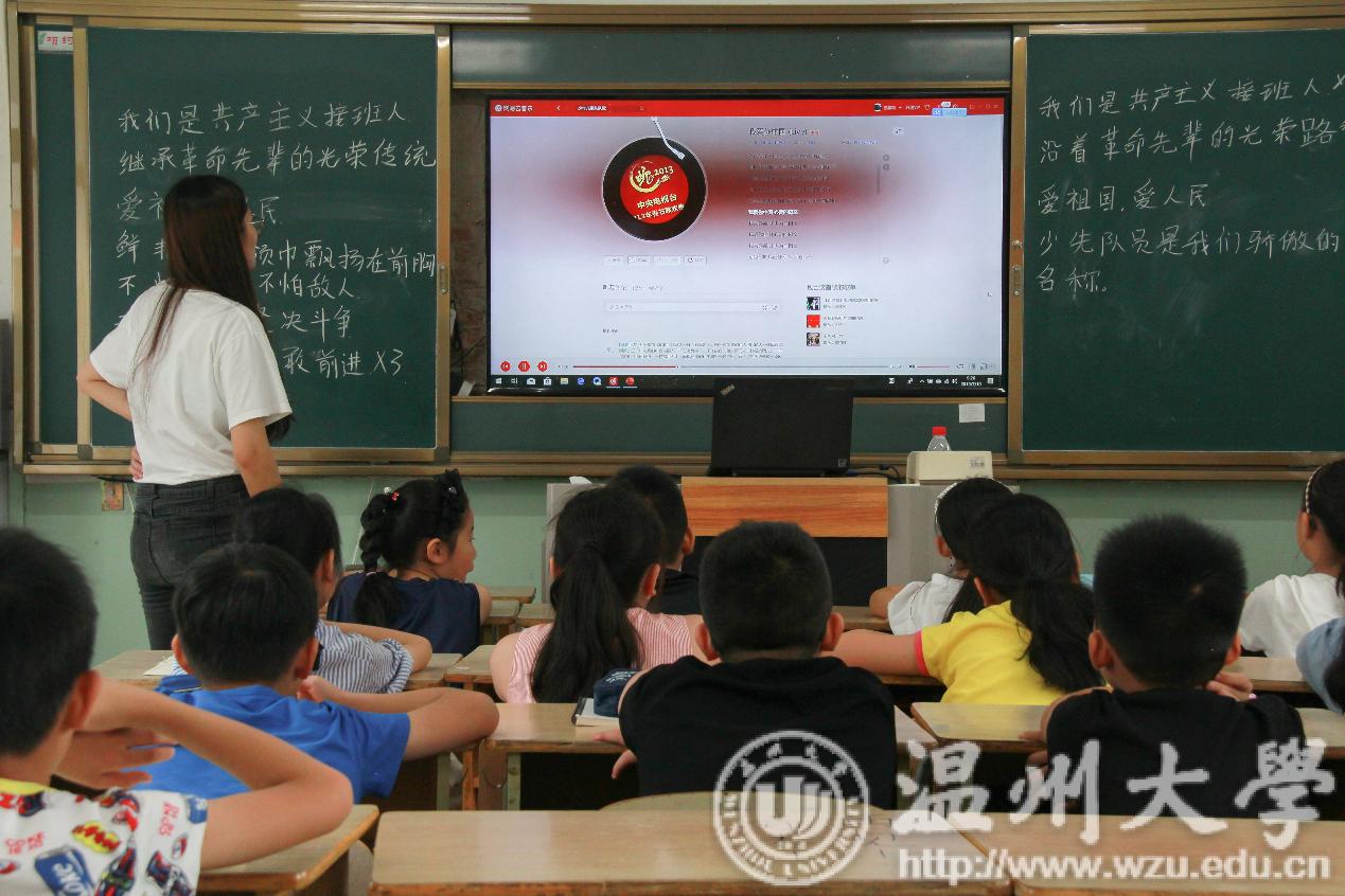 据悉,beat365官方网站化学与材料工程学院青韵暑期社会实践队以红色音符•音乐鉴赏课程作为开启青韵红色之旅的第一篇章,同学们的热情使队员们干劲十足,也让队员们看到了新形式的红色教育对孩子们的吸引力,表示对接下来红色教育课程的开展充满信心。平阳红色经典之歌已被奏响,青春的气息溢出苏步青学校,与平阳当地红色文化水乳交融,成为一个更有生命力的有机体,红色文化的继承队伍也愈加壮大。