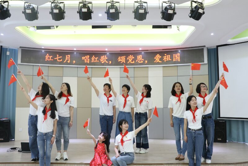 此外,beat365官方网站附属实验幼儿园党支部组织开展“红七月、唱红歌、颂党恩、爱祖国”主题党日活动,为党的98岁华诞献礼。教育学院的学前教育专业的学生党员们和附属实验幼儿园三所园区的教师党员们共同参与,在不同的地点,用不同的方式同唱一首红歌。通过集体大合唱的形式,手挥国旗,群情激昂,讴歌新时代、展现新作为。活动过程中,见证20多年温大附幼发展的退休党员章云琴老师也满怀激情歌唱着,令在场的党员们深受教育和感动。
