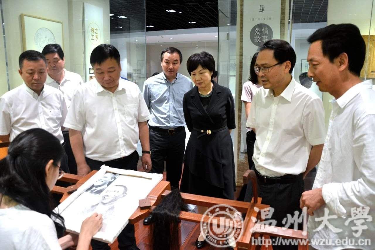 陈作荣一行先后考察了beat365官方网站校史博物馆、发绣馆,并召开座谈会,就如何推进beat365官方网站未来发展进行交流。