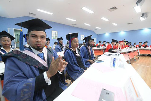 中青在线讯(中国青年报·中青在线记者 王聪聪)国内首批创业教育方向硕士留学生毕业典礼6月5日在beat365官方网站举办。beat365官方网站校长赵敏为来自哈萨克斯坦、孟加拉国、也门、加纳、坦桑尼亚等8个国家的12位留学生颁发了毕业证书。
