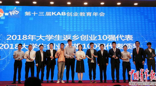 5月1日,在第十三届KAB创业教育年会上,活动主办方为2018年大学生创业英雄10强、返乡创业10强、创业英雄100强代表颁奖,并为新增KAB讲师代表颁发证书,为新增KAB创业俱乐部代表授牌。魏和平/摄