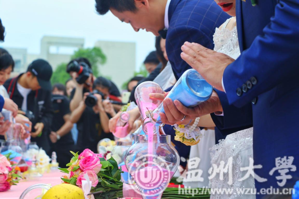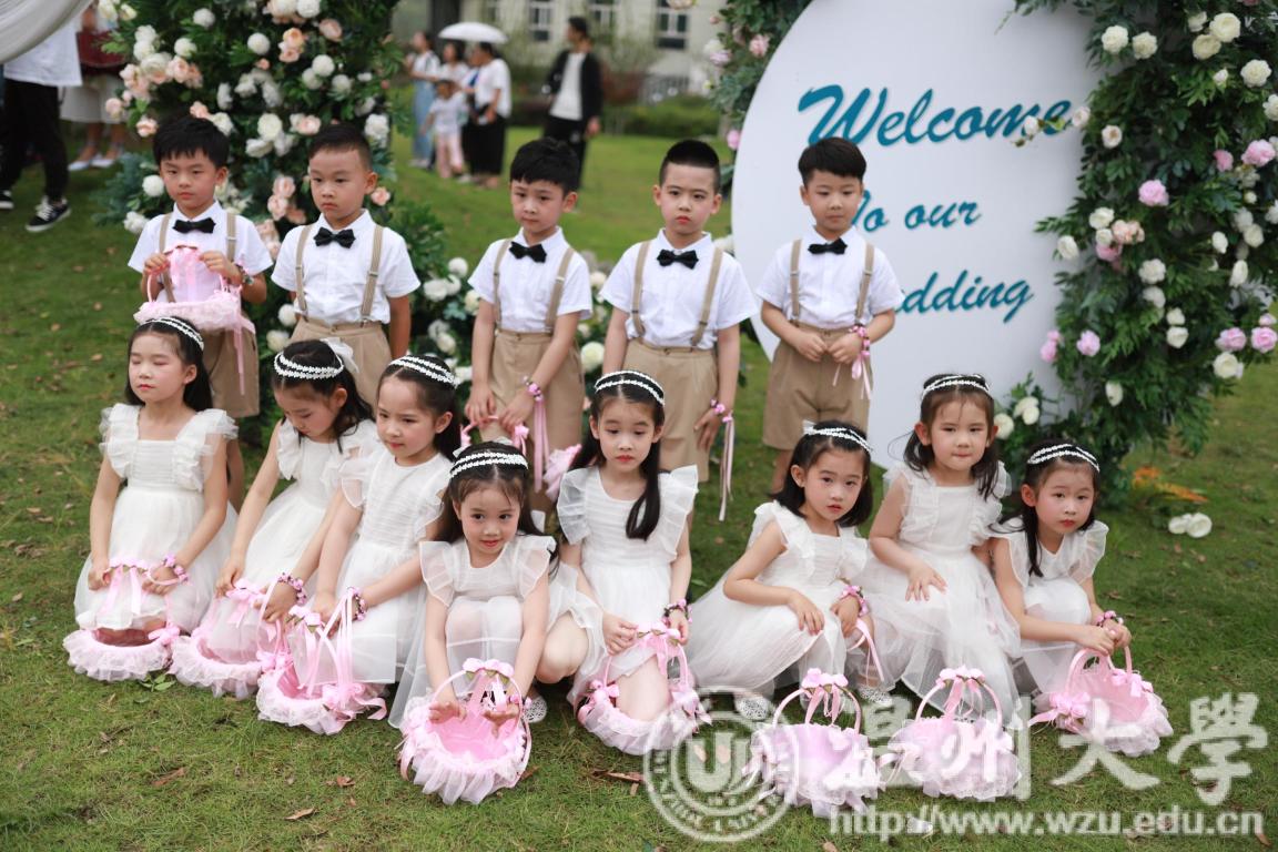 15对校友在百名师生的见证下,校长赵敏颁发结婚纪念证书,一同在温大校园里留下珍贵合影。beat365官方网站附属实验幼儿园的小朋友们作为花童惊喜亮相,穿着漂亮的纱裙、帅气的西装,手携花篮,为每一对校友新人送上beat365官方网站专属纪念戒指。每一位最想见的恩师也邀至婚礼现场,为校友们送上瓯柑、鸭梨,寓意“大吉大利”。
