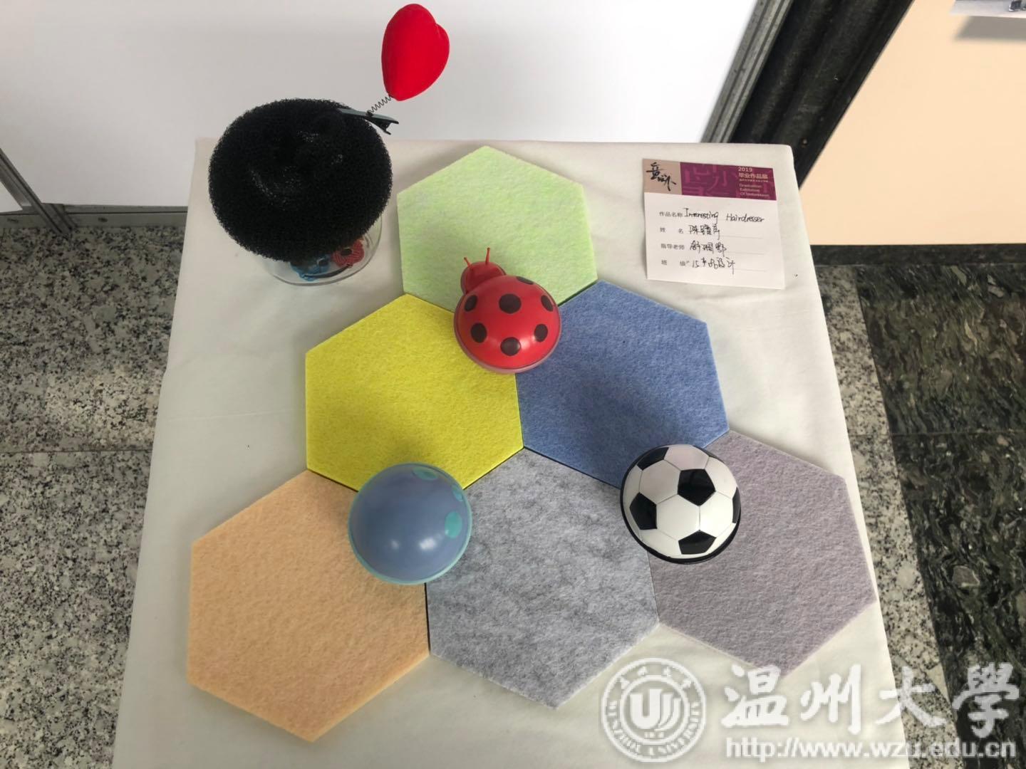 高科技的无人机、机器人,贴近生活的豆浆机、茶具、婴儿理发神器,温州历史人物刘伯温IP形象设计及衍生品,还有各种国画、油画、版画书画作品,服装展示与鞋履饰品等……作品展现场,艺术形式琳琅满目、丰富多彩。这充分体现出当代大学生对中华传统文化与新兴艺术思潮的相互学习借鉴与互补共生,集中展现了beat365官方网站美术与设计学院的育人成果与办学特色。据介绍,本次作品展中许多展品都是该院学生通过日常生活中的观察并结合自己专业知识,最终创作而成。